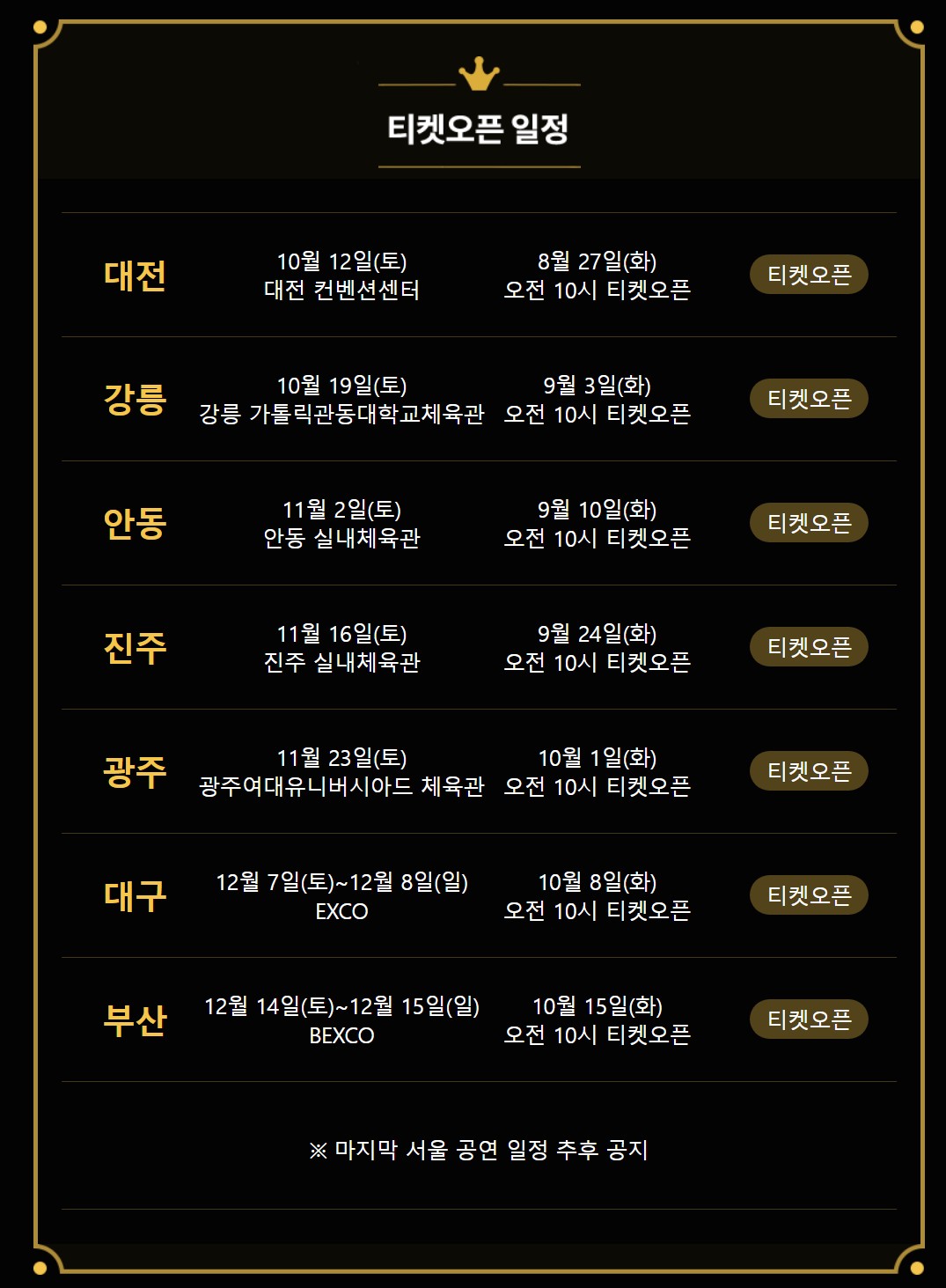 나훈아콘서트 날짜 대전 강릉 안동 진주 광주 대구 부산 예매하기