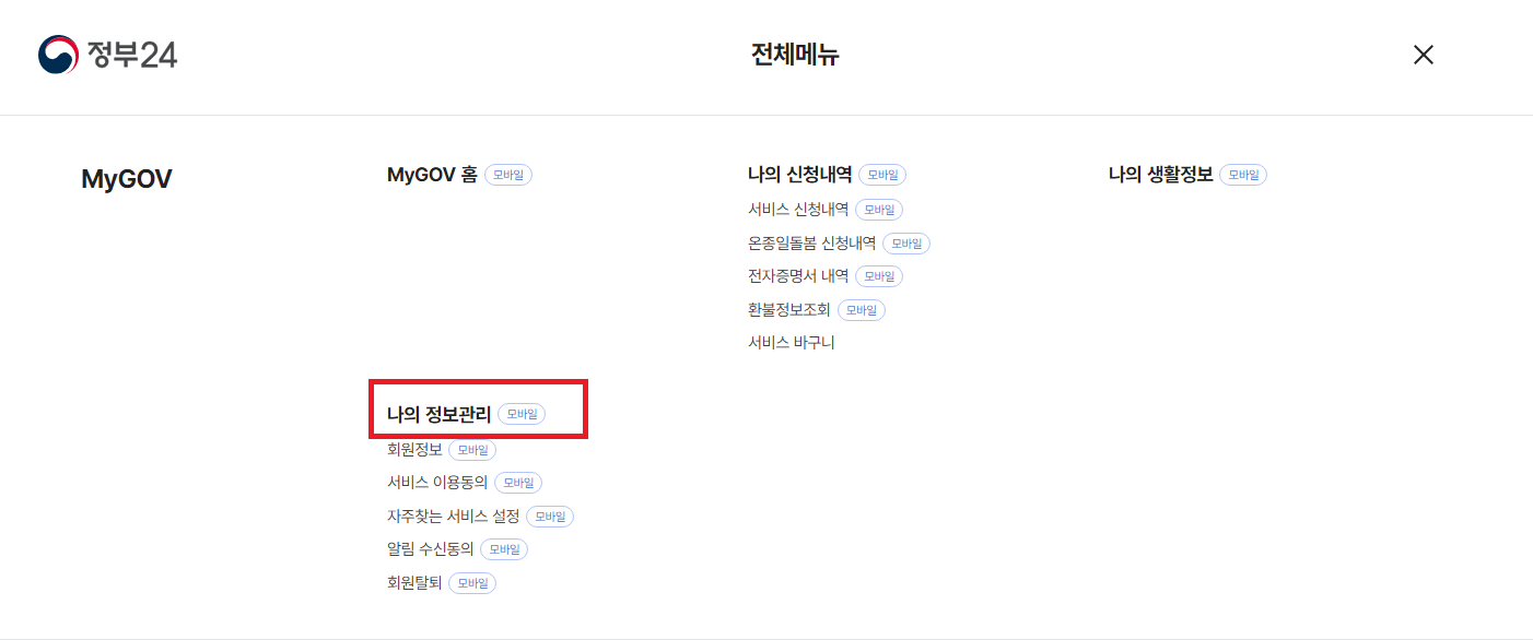 1. 정부24 홈페이지 오른쪽 상단에 3줄짜리를 클릭합니다.